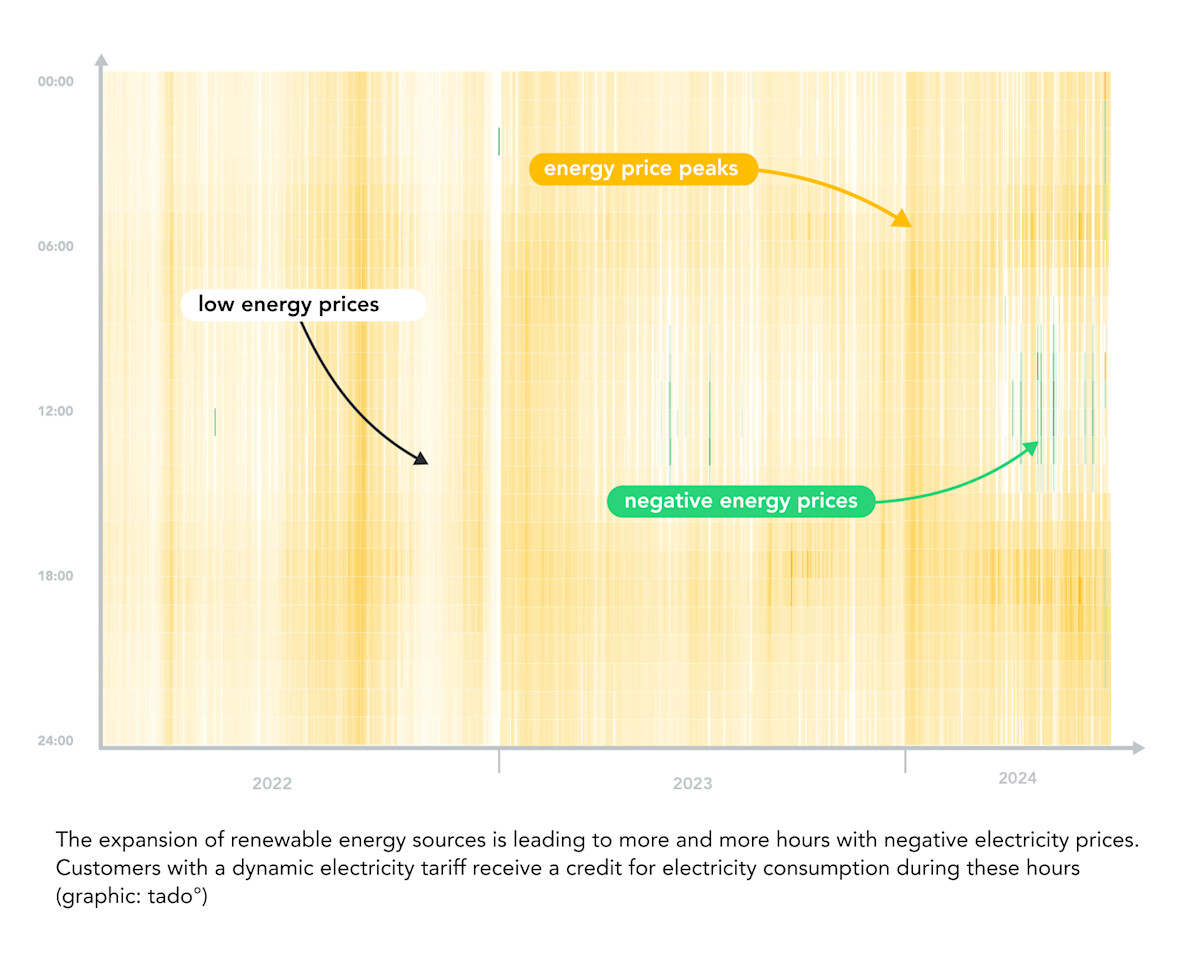 "The energy transition is paying off for consumers. The share of renewable energy in the electricity grid will continue to rise, and with it the fluctuations in electricity prices. That's good news for households. It means that electricity bills can be cut even further," explains Simon Schmitz, founder of aWATTar and responsible for the Energy division at tado°. "All that households need to benefit from the energy transition is a dynamic electricity tariff and energy management solutions that shift the consumption of heat pumps, electric cars or washing machines and the like to times when electricity is at its cheapest."