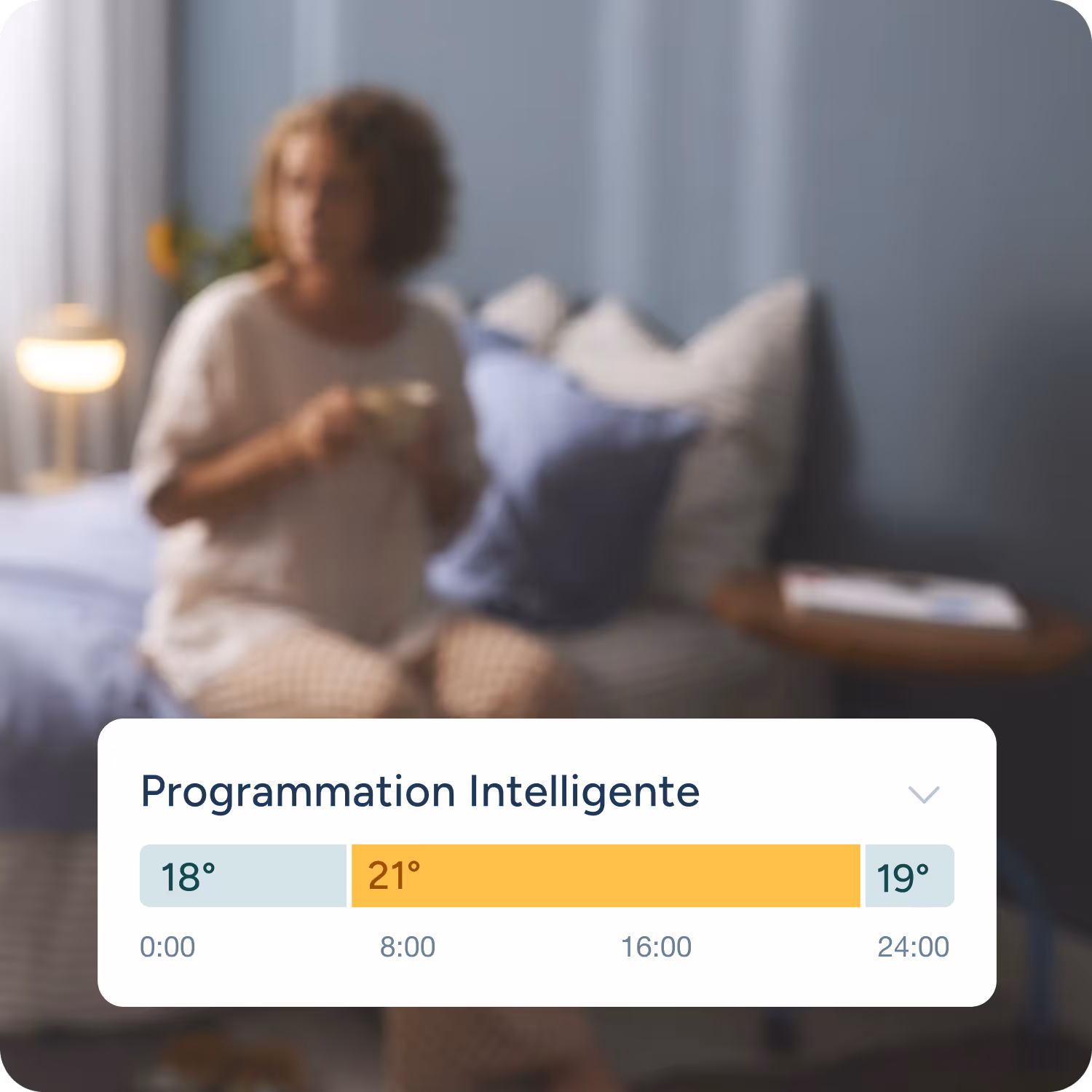 En seulement deux clics, vous pouvez créer des plannings de chauffe personnalisés pour chaque pièce, en fonction de vos habitudes quotidiennes. Enregistrés sur l'appareil, vos programmes fonctionnent même sans connexion Internet.
