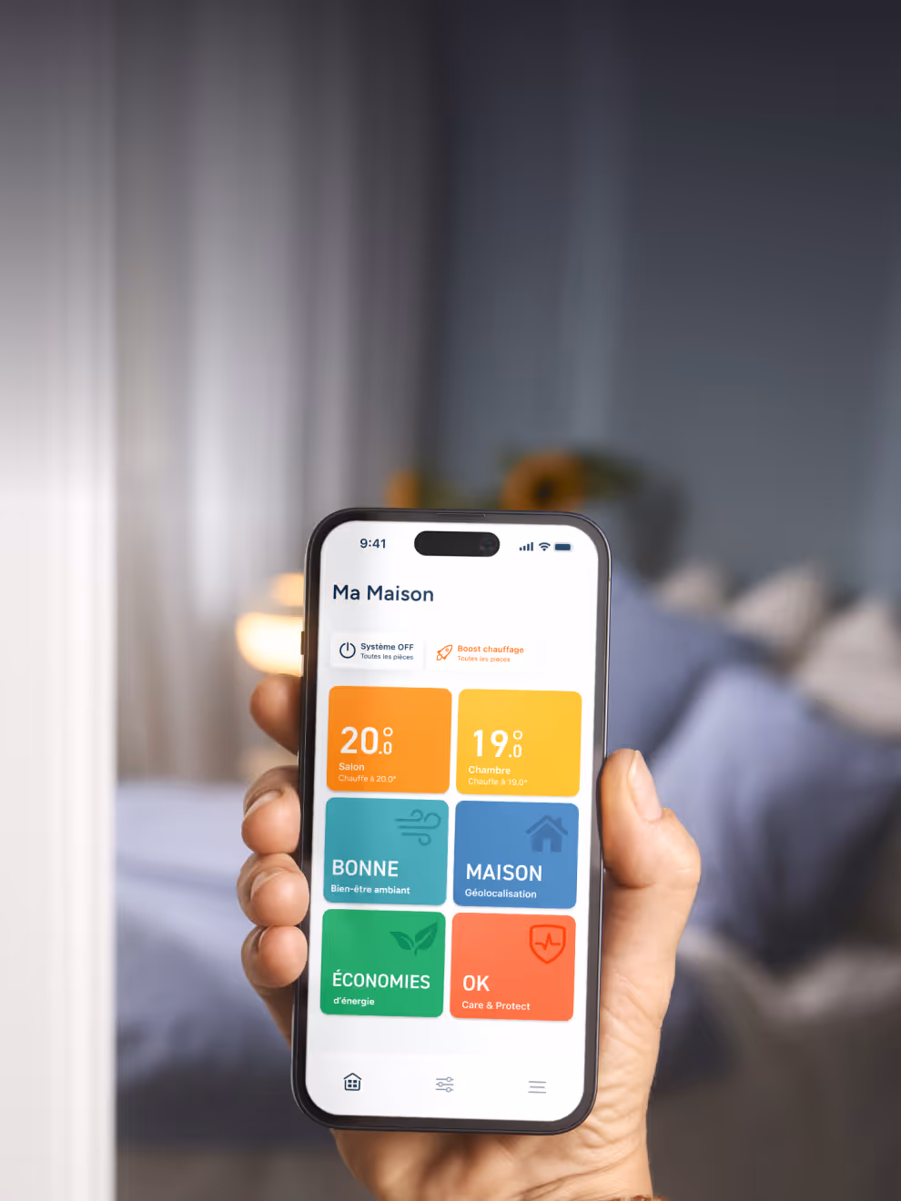 Pilotez votre chauffage via l'appli et ses fonctionnalités IA.