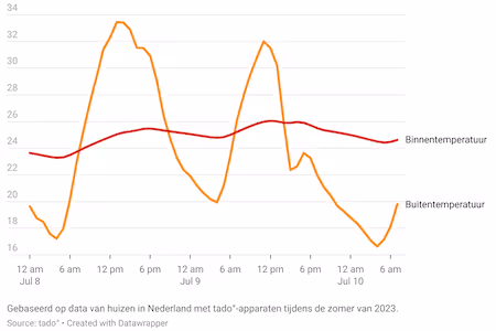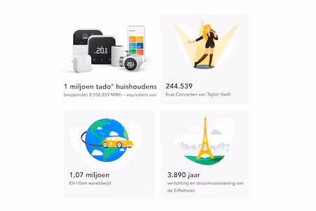 De hardware, software en diensten van tado° leveren eenvoudig en efficiënt klimaatbeheer voor woningen, intelligent opladen van elektrische voertuigen en dynamische energietarief- en fotovoltaïsche integratie op één platform. Het doel is om maximaal comfort en besparing te bieden, terwijl het elektriciteitsverbruik automatisch wordt verschoven naar de goedkoopste en groenste uren van de dag.
